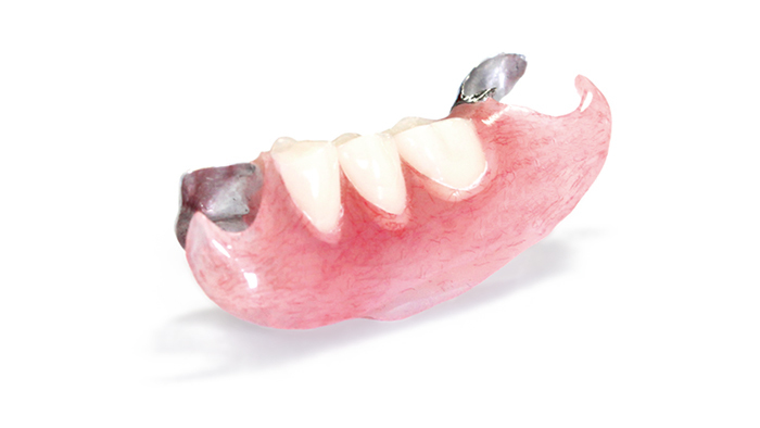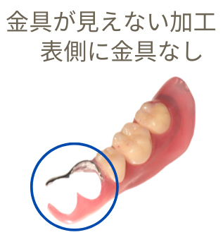 違和感が少なく、おいしく食事が食べられる金属床義歯に、金具が見えない加工を施した入れ歯です。